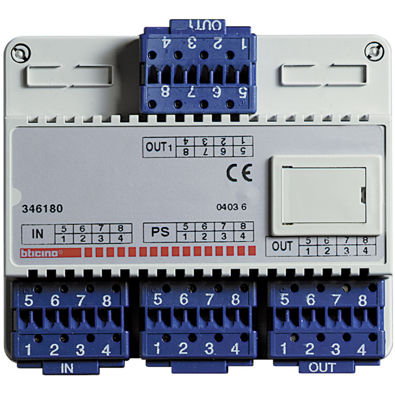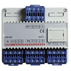 Distribuidor de montantes audio-vídeo para sistema 8 hilos. Este dispositivo permite instalaciones con un número de montante superior a 40 o con montantes con más de 100 viviendas.