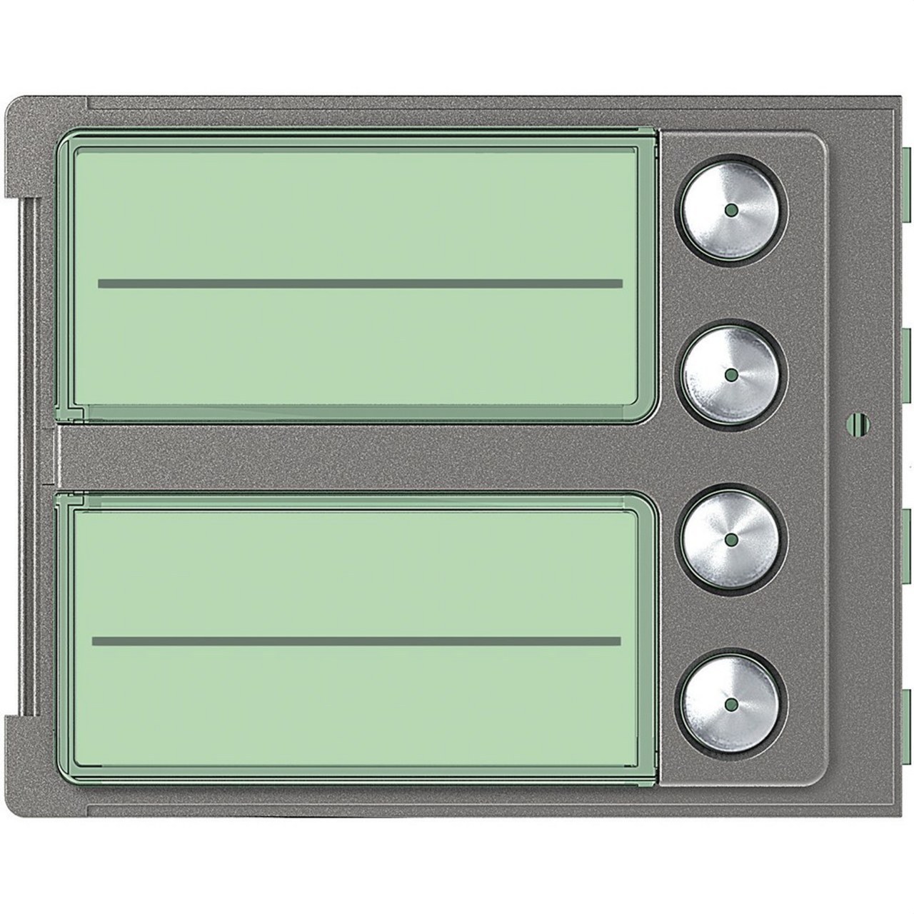Placa frontal para módulos electrónicos de audio - Funcionalidad para 4 pulsadores (ref 352000 módulo electrónico.)- Acabado Robur. Placas de calle Sfera Robur - Para instalaciones de empotrar. A completar con: caja de empotrar (normal o antivandálica) , chasis+soporte, modulos electronicos - placas - marcos.