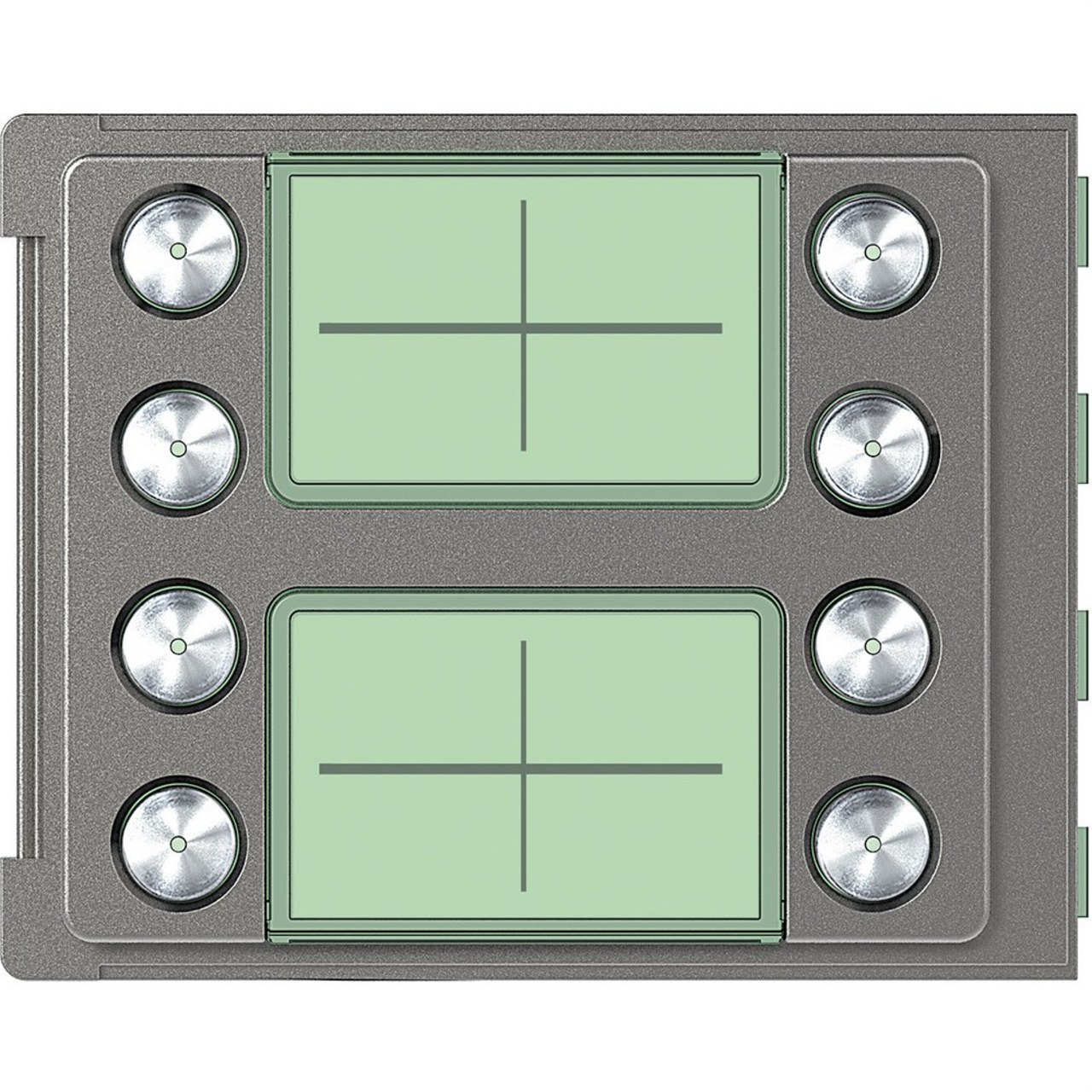 Placa frontal para módulos electrónicos de audio - Funcionalidad para 8 pulsadores en doble fila (ref 352100 módulo electrónico.)- Acabado Robur. Placas de calle Sfera Robur - Para instalaciones de empotrar.A completar con: caja de empotrar (normal o antivandálica), chasis+soporte, modulos electronicos - marcos.