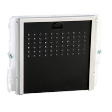 Módulo audio con tapa serie IKALL negro. Módulo preparado para grupo fónico con frontal en policarbonato negro. Se tiene que completar con el correspondiente portero eléctrico, que depende del sistema de cableado utilizado. Sus dimensiones son de 112x89,5x32 mm.