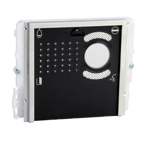 Módulo audio/vídeo serie IKALL con tapa negro. Módulo de audio y vídeo en policarbonato negro, que se tiene que completar con el correspondiente videoportero, y que a su vez depende del sistema de cableado utilizado.