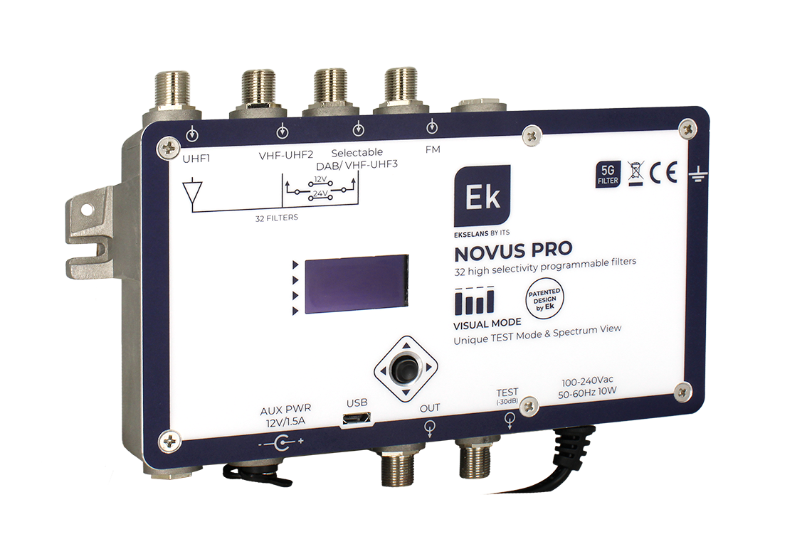 EKSELANS BY ITS – Amplificador 32 filtros UHF ultraselectivos 1 entrada UHF (G>65dB)/ 1 entrada UHF con previo interno (G>75dB) / 1 entrada UHF (G>65dB) configurable para DAB/ 1 entrada FM (G>28dB) alimentación previos (12V/24V)