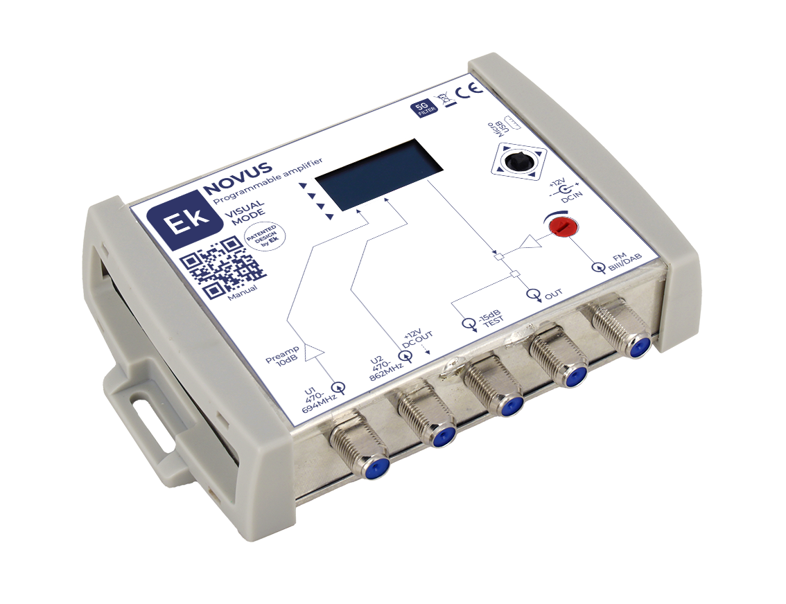 EKSELANS BY ITS – Amplificador 32 filtros UHF ultraselectivos 1 entrada UHF(G>55dB)/ 1 entrada UHF con previo interno (G>65dB) / 1 entrada FM-DAB-BIII (G>12dB) alimentación previos (12V)