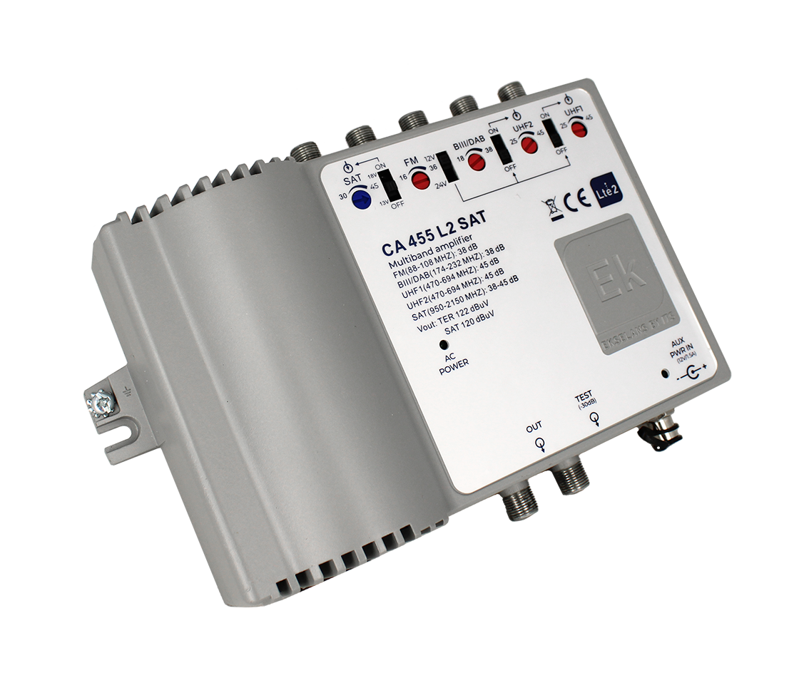 EKSELANS BY ITS – Central alta potencia 3 IN VHF/UHF/SAT, G:40/45/38-45/121/120dBuV. LTE2
