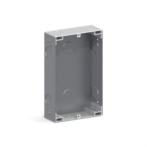 Caja empotrar CITY S4. Para realizar la instalación de una placa es necesario colocar una caja en la pared o muro donde posteriormente fijaremos la placa. Las cajas de empotrar están fabricadas en aluminio y zamak. Disponen de unas bisagras abatibles en cualquier sentido, que permiten sujetar la placa mientras se realiza el cableado. Tienen unas marcas circulares hendidas en el fondo de la caja, que se agujerean con un ligero golpe o presión, permitiendo así el paso de los cables. En el caso que se combinen varias placas, siempre de la misma serie, es necesario la utilización de un juego de separadores para un perfecto acoplamiento. Se requiere un juego por cada placa adicional que se instala entre las cajas de empotrar. Disponibles en todas las series. Seleccionar la caja de la serie necesaria, según el caso.