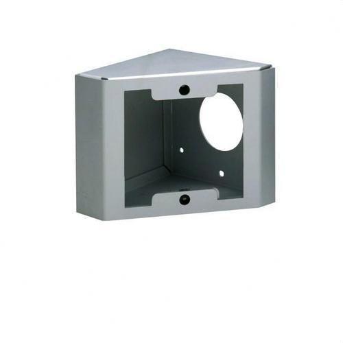 Necesario cuando la placa debe instalarse en un punto de difícil accesibilidad, por ejemplo, detrás de una verja. También es útil para poder enfocar mejor la cámara, en lugares en los que la placa está instalada de forma que la persona que ha llamado queda fuera del campo de visión de la misma. Están fabricadas en aluminio anodizado de 2mm de espesor. Como es posible combinar dos o más placas, siempre que sean de la misma serie, existen 9 series de complementos angulares para placas simples, dobles o triples, seleccionar el complemento angular de la serie necesario, según el caso. Versiones de Complemento Angular para 1, 2 ó 3 placas: SIMPLE: 1 Placa. DOBLE: 2 Placas. TRIPLE: 3 Placas.