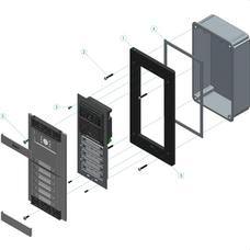Marco adaptador que permite la sustitución de una placa antigua Serie edificio Rock y la instalación de una placa NEXA Aluminio de 2 módulos Fabricado en metacrilato negro opaco de 10mm Se suministra con todos los elementos necesarios para su instalación Dimensiones: 145(An) x 278(Al) x 10(P) mm