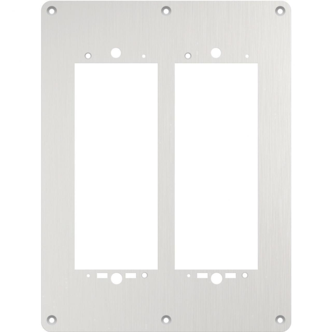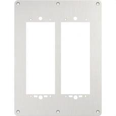 Marco de sustitución para placa Nexa aluminio (no incluida) de 2(Al) x 2(An) módulos Aluminio anodizado 3mm de espesor Permite tapar el agujero dejado por placas de mayor tamaño Instalación compatible con o sin caja de empotrar Incluye tornillería de montaje Dimensiones: 334(An) x 430(Al) mm.