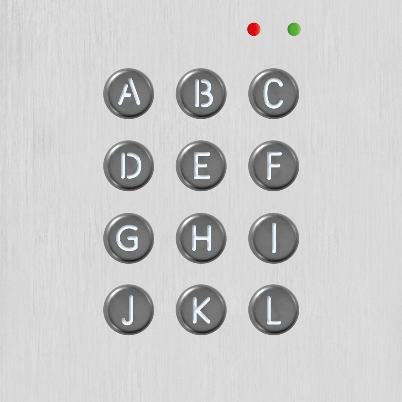 Para placa Nexa aluminio. Frontal de aluminio anodizado de 1,8mm. de espesor. Teclado iluminado en blanco con pulsadores recubiertos en acero inoxidable. Letras A hasta L. Permite asignar una o varias letras al código de llamada de la vivienda. Es necesario combinarlo con los módulos de pantalla N3403/AL y teclado numérico N3301/AL. Dimensiones externas: 100(An) x 100(Al) mm.