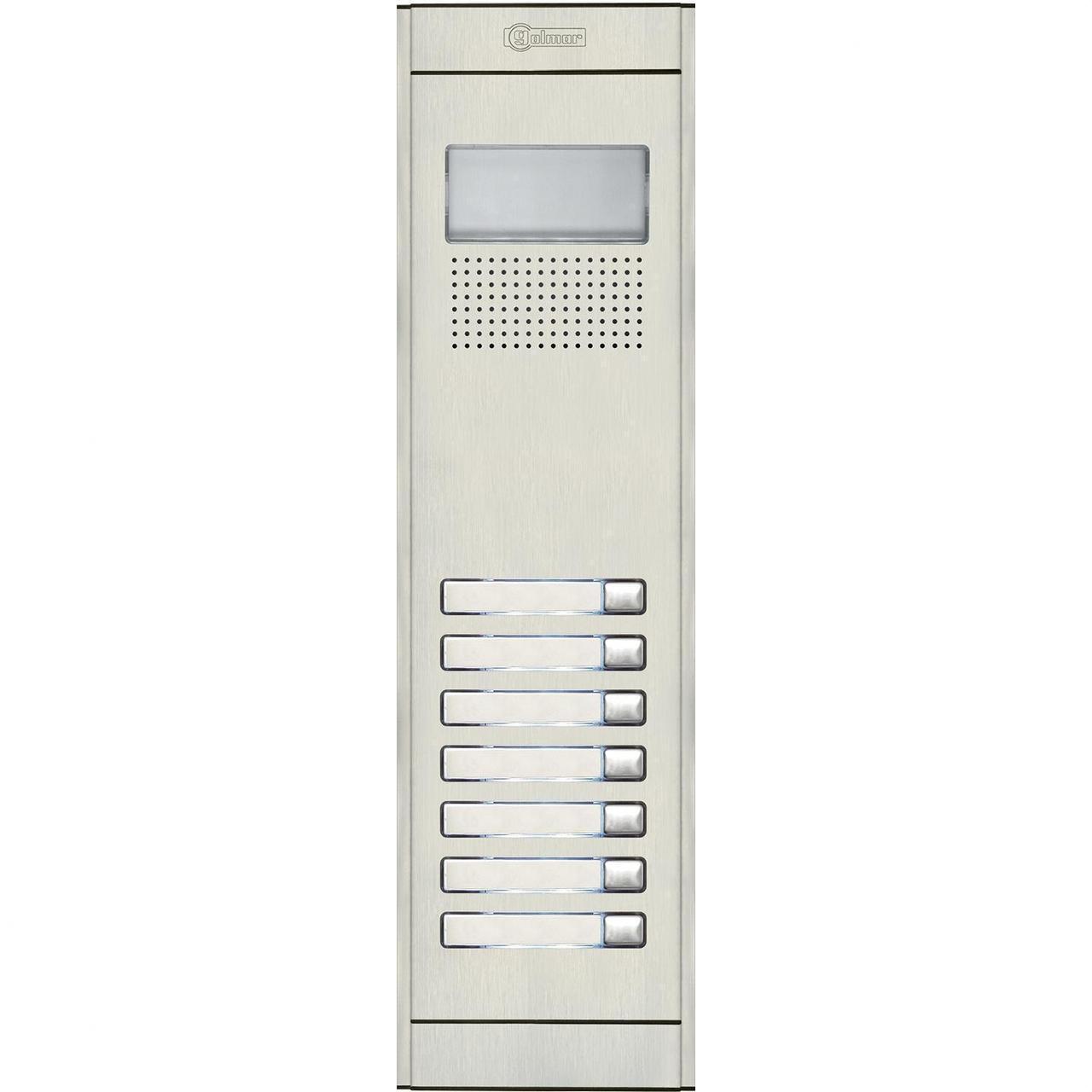 Módulo de mando N1107/60L pulsador individual. 7 pulsadores de llamada. Incluye cabezales, perfiles laterales y bastidor Requiere 1 módulo electrónico de pulsadores. Dimensiones: 113 (An) x 405 (Al) mm.