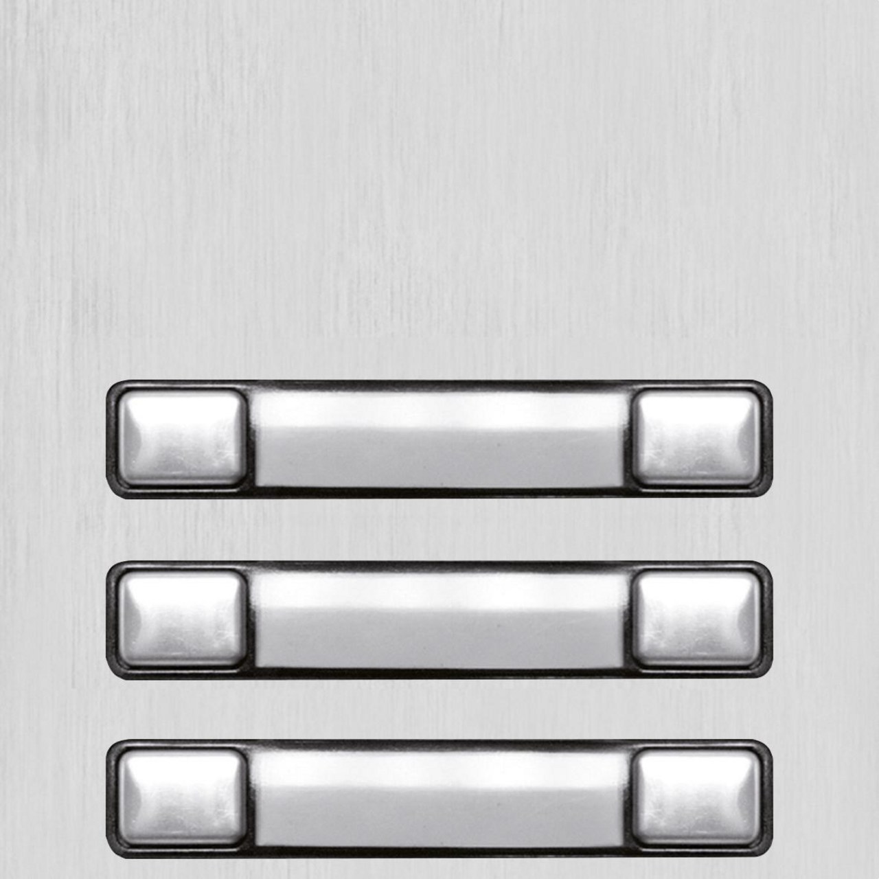 Módulo 3 pulsadores dobles 6 llamadas N3260/A. Fabricado en aluminio anodizado. Posibilidad de montaje horizontal y vertical. Completar la placa con el kit de montaje o ensamblaje. N° máximo de módulos en vertical 3