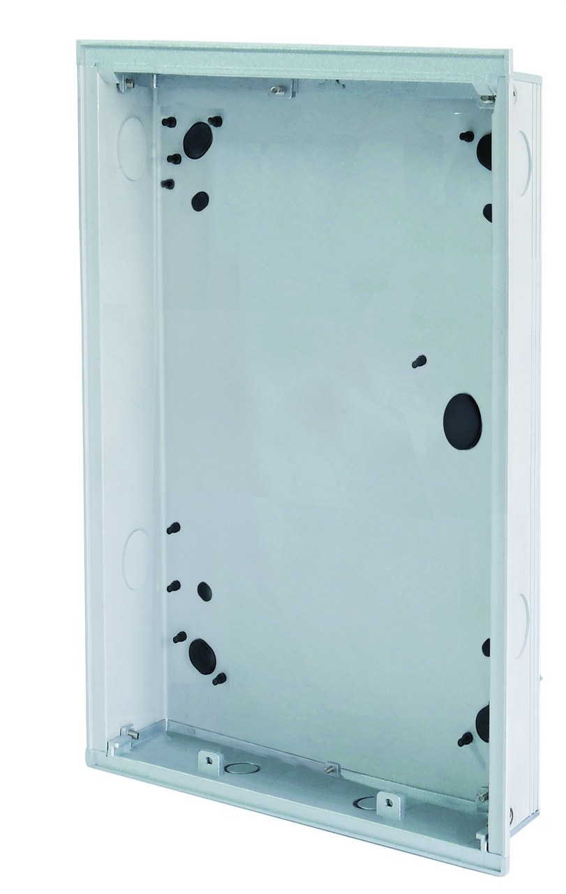 Caja de empotrar, tamaño 2/3 instalación empotrada para placas de calle de 6 módulos W2423. La flexibilidad, la sencillez y la elegancia se están convirtiendo en factores clave para poder comunicar interior y exterior de una manera placentera. Con la gama de sistemas de comunicación Welcome M todo es posible. Gracias al diseño modular y a la alta versatilidad del sistema de bus de dos hilos, la nueva gama Welcome M está diseñada en base a los conceptos de flexibilidad, sencillez y elegancia. Así, la instalación y utilización son mucho más fáciles y cómodas. Welcome M es lo que está buscando. Hace realidad los deseos de instaladores y usuarios finales.