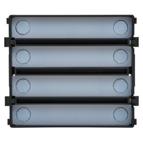 Módulo digital con 8 pulsadores ubicados en 2 columnas, su diseño permite combinarlo fácilmente con otros perfiles de pulsadores y su conexión con el resto de módulos se lleva a cabo mediante latiguillos (se suministra con 1 latiguillo de 13 cm para electrónica teguibus).