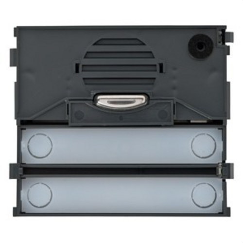 Grupo fónico convencional de la SERIE 7 apto para edificios independientes que disponen de uno o varios accesos. Equipado con 4 pulsadores distribuidos en 2 columnas y latiguillo de 70 cm para electrónica teguibus. El sistema emitirá pitidos intermitentes y el LED de pulsador de tarjeteros parpadeará si se intenta llamar desde una placa cuando ya existe comunicación entre una vivienda y otra placa.
