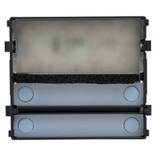 Módulo electrónico de señalización con ventana de ½ módulo. Incorpora 4 pulsadores en 2 columnas en la mitad inferior, para instalaciones Teguibus. Iluminación de bajo consumo mediante leds. La conexión con el resto de módulos se realiza mediante latiguillos. Se suministra con un latiguillo de 13 cm para electrónica Teguibus.